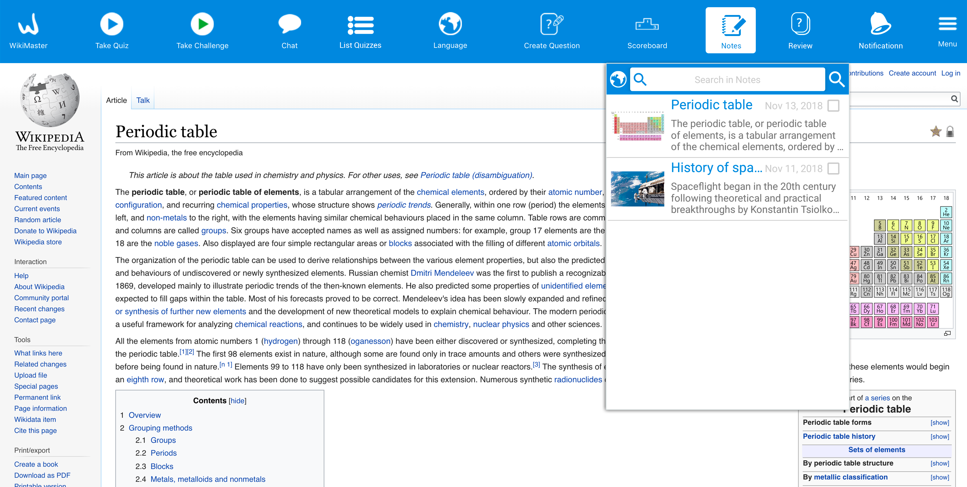 We at WOK consider WikiMaster as being an even improved version of Wikipedia. Call it an upgrade to 2.0 if you like. In the WikiMaster app, we have added layers of academic useful functionality for students to get more power of the vast information on Wikipedia in order to quickly and more easily learn facts. As we added a new layer of fun to it. Now: Time has come for the WOK project to turn its focus to the Desktop version. Bringing Wikipedia on the web to the next level. Getting from being the Nr 1 Library of Information to the University. Here is a sneak preview.