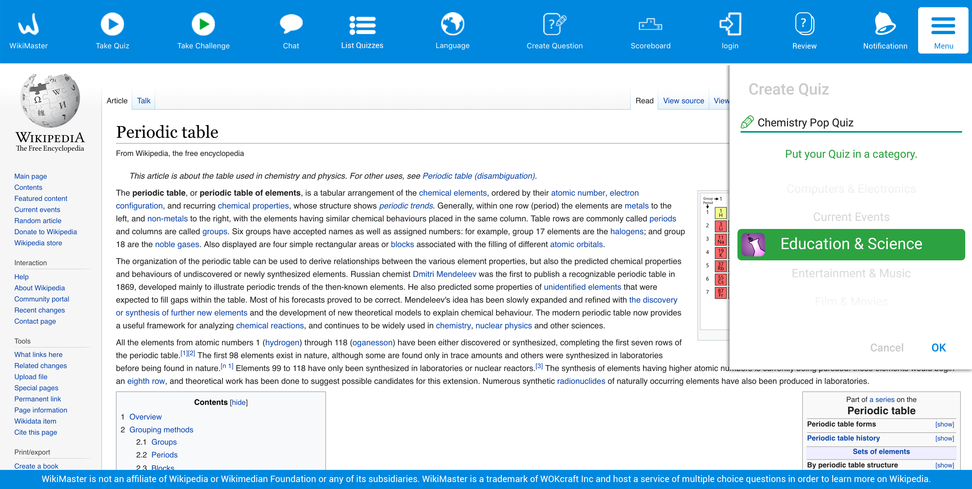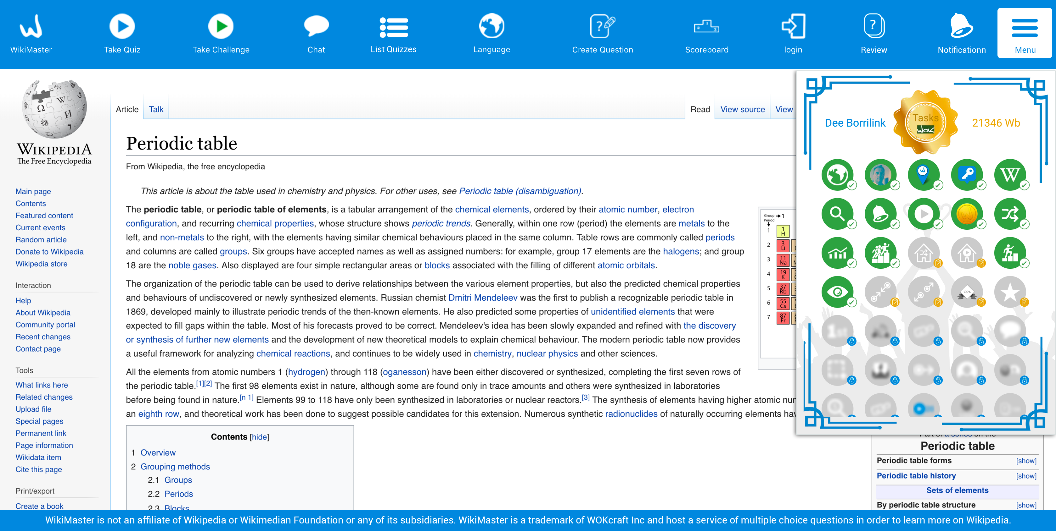 With WOK working as a cousin outside the WMF: We now started with WikiMaster the web version of WikiMaster adding quizzes and validation for national exams like SAT into the Wikipedia World.